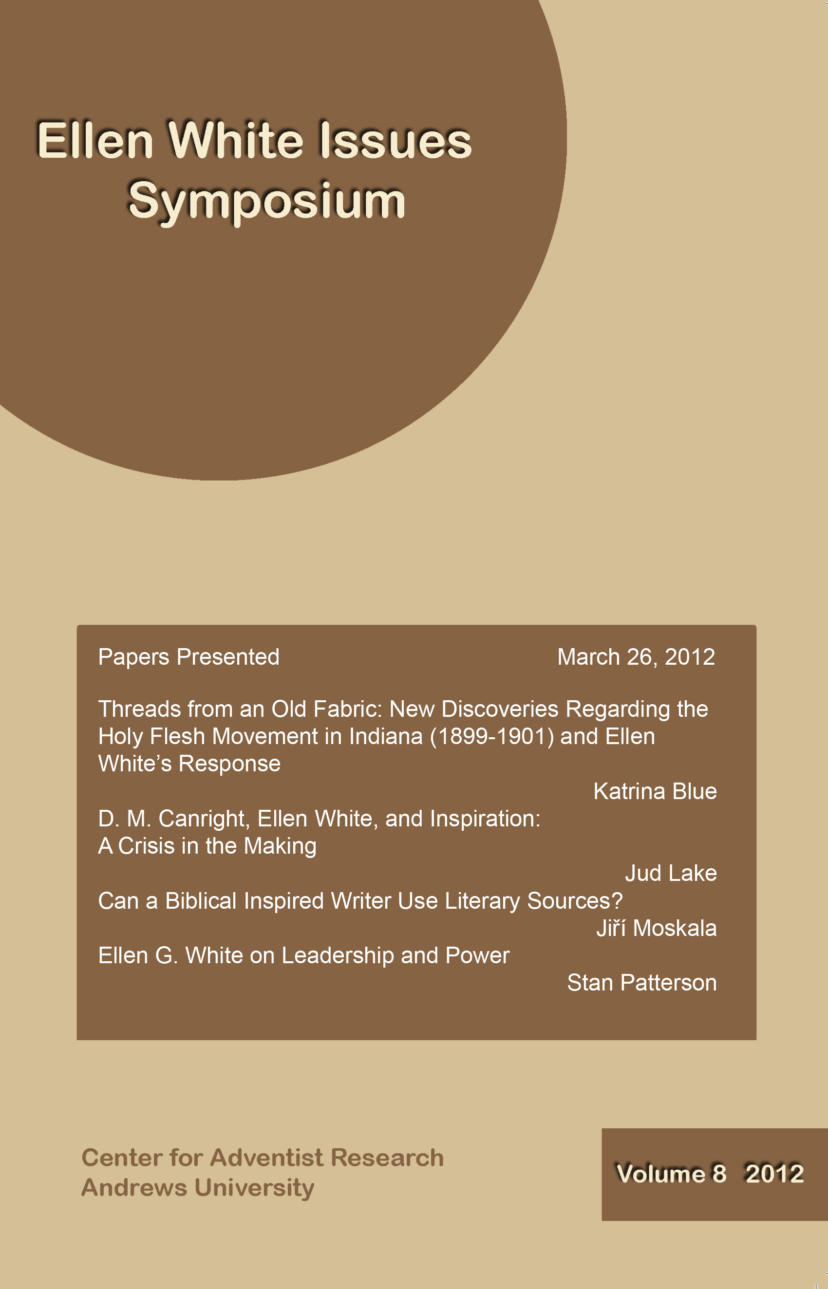 This booklet contains presentations from the Ellen White Issues Symposium held on March 26, 2012, in the chapel of the Seventh-day Adventist Theological Seminary at Andrews University in Berrien Springs, Michigan. The Symposium was jointly sponsored by the Andrews University Center for Adventist Research, the Ellen G. White Estate located at the General Conference, and the Church History Department of the Seventh-day Adventist Theological Seminary. The content, expressions, and style of each paper are those of the individual author.