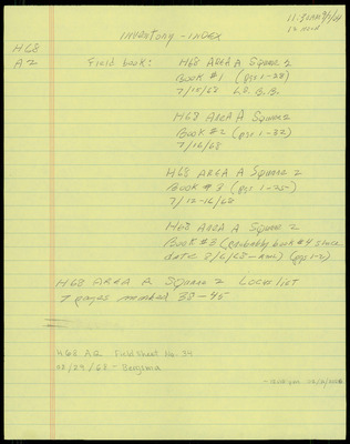 H68 Area A, Square 2, Folder Inventory