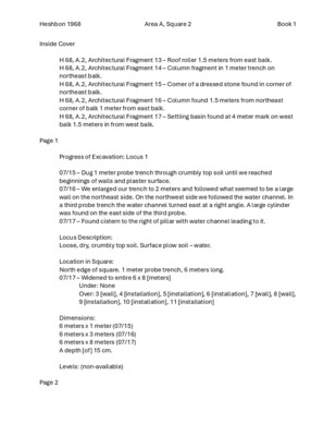 H68 Area A, Square 1, Field Notebook 2