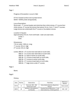 H68, Area A, Square 2, Field Notebook 2