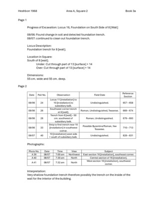 H68, Area A, Square 2, Field Notebook 3