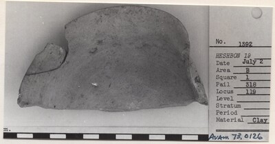 Photo # 1392. Area B. Square 1. Pail 318. Locus 119