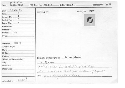 Not entered in EEP's statistics but noted as lost in section of report on Iron Rings, Two Ends