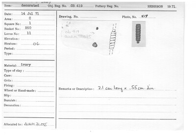 Notes: 2.1 cm. long x 0.55 cm. diameter