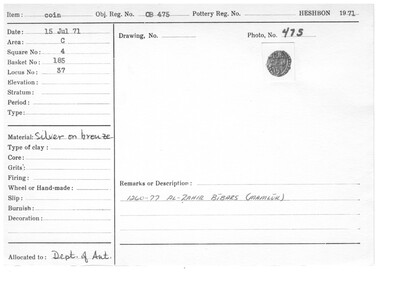 Notes: 1260-77 Al-Zahir Bibars (Mamluk)