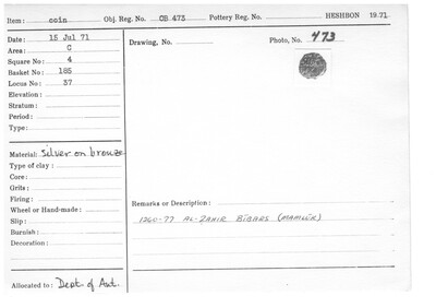 Notes: 1260-77 Al-Zahir Bibars (Mamluk)