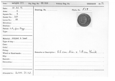 Notes: 2.5 cm. diameter x 1.8 cm. thick