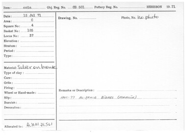Obj. Reg. No. 501