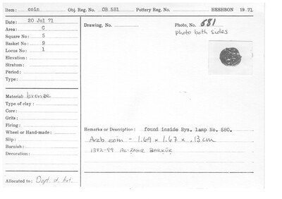 Arabic (Islamic) coin - 1.69 x 1.67 x 0.13 cm.