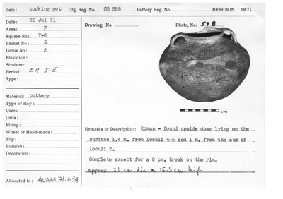 Notes: Roman - found upside down lying on the surface 1.4 m. from loculi 4-5 and 1 m. from the end of loculi 2.