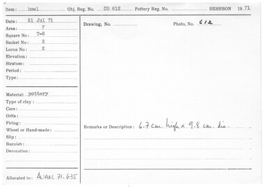 Obj. Reg. No. 612
