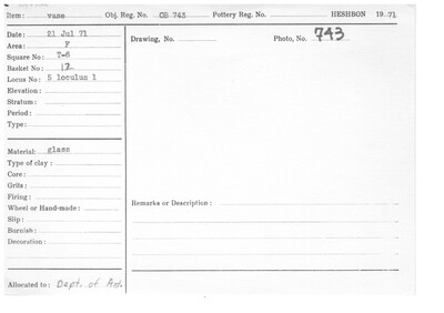 Obj. Reg. No. 743