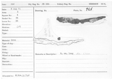 Notes: 9.0 cm. long; 1.1 cm. diameter