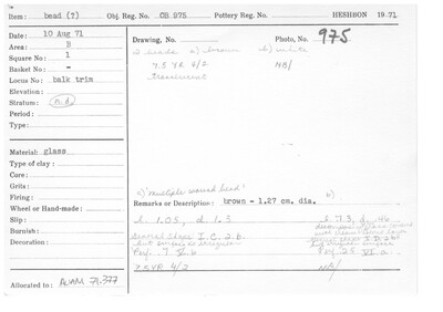 Notes: 2 beads: a) brown b) white - 7.5 YR 4/2 - translucent