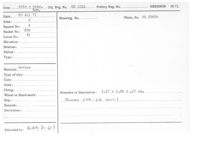 Obj. Reg. No. 1019