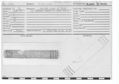 Rounded piece of ivory bar shaped. Carved at each end.