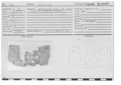Notes: Rectangular piece of ivory cared in a lattice pattern.