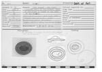 Oval shaped. Has black polished stone in the center. Part of the clasp in place on the back of the brooch.