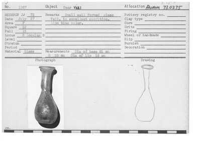 Notes: Diameter of Base: 25 mm; Height: 59 mm; Diameter of Lip: 18 mm
