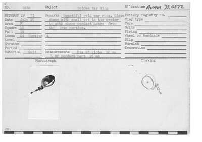 Beautiful gold earring. Globe shape with small dot in the center. An ankh shape pendant hangs from the globe portion.