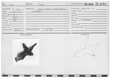 Notes: Length: 50 mm; Three prong clamp, badly corroded.