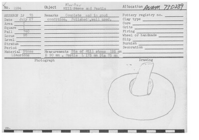 Notes: Diameter of Millstone: 195 mm; Height: 90 mm; Pestle Length: 175 mm; Diameter: 75 mm