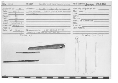 Notes: Length of Needle: 67 mm; Toothpicks: 64 mm and 44 mm