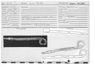 Notes on Attached Copy: Options: 1) Tent peg: but a) point is very sharp for something driven repeatedly into sand, and b) why put an iron tent peg into a tomb?