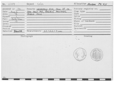 Uncertain city, coin of ca. 3rd century AD, possibly another Esbus coin.