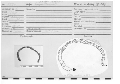 Spindle whorl 2492; bronze spatula 2491